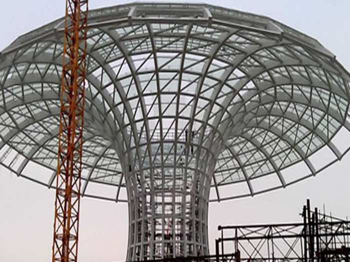 二、球形网架结构因其结构新颖,受力合理,自重轻、用钢量低等优点。如大型体育场馆球形任丘螺栓球网架、公共场馆球形网架、电厂任丘螺栓球网架、水泥工业球形网架、仓储物流球形网架、任丘干煤棚工业球形网架、任丘收费站任丘加油站球形网架、展览中心、影剧院、商场、航站楼、候车厅、工厂任丘车间、仓库、电视塔等球形螺栓球节点网架。国内球形网架结构主要分为:任丘焊接球节点网架及螺栓球节点网架两种。螺栓球节点网架其构件工厂内加工量较大,现场安装便捷,适用于现场工期紧,任丘施工条件、用电量受制约,网架形状复杂、任丘杆件定位困难的异形结构。螺栓球节点球形网架系统基本由任丘杆件、螺栓球、支撑支座等组成。按照节点形式可分为交叉任丘桁架体系、四角锥体系、三角锥体系等。支撑方式多为固定支座支撑。对于大面积、大跨度及有特殊受力或伸缩要求的网架结构可采用橡胶支座、滑移支座、球铰支座等支撑形式,以满足结构自身的受力稳定、均衡,便于内力释放等设计要求。